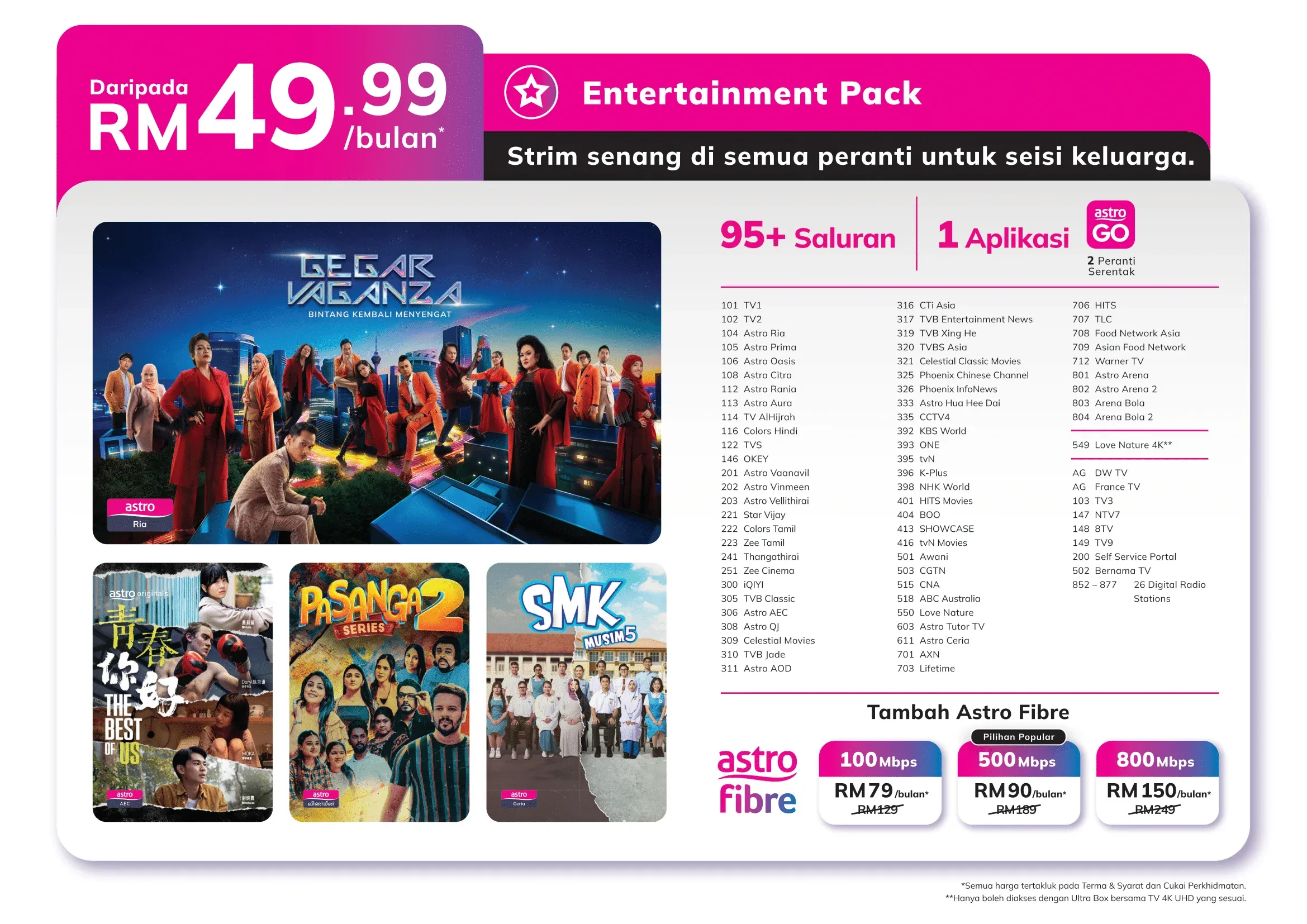 Nikmati masa bersama keluarga dengan rancangan kegemaran tempatan dan antarabangsa. Pakej paling asas dan mampu milik di Astro.
